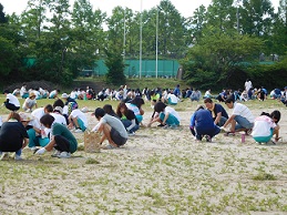 20日(日)、PTA環境整備部主催の親子除草作業を行いました。全校生徒と保護者、職員あわせておよそ600名に参加していただき、グラウンドやテニスコート、校舎周辺の除草作業を行いました。特にグラウンドは9月9日(土)の体育祭の会場となります。おかげさまで生徒が走るコースは大変きれいになりました。また、この日のために草捨て場の穴掘りや校地内とグラウンドの草刈りをボランティアでしていただくなど、日頃から保護者や地域の皆様には大変お世話になっています。子どもたちのために様々な立場で支援いただいていることに感謝しています。暑い中、作業にご協力いただきありがとうございました。