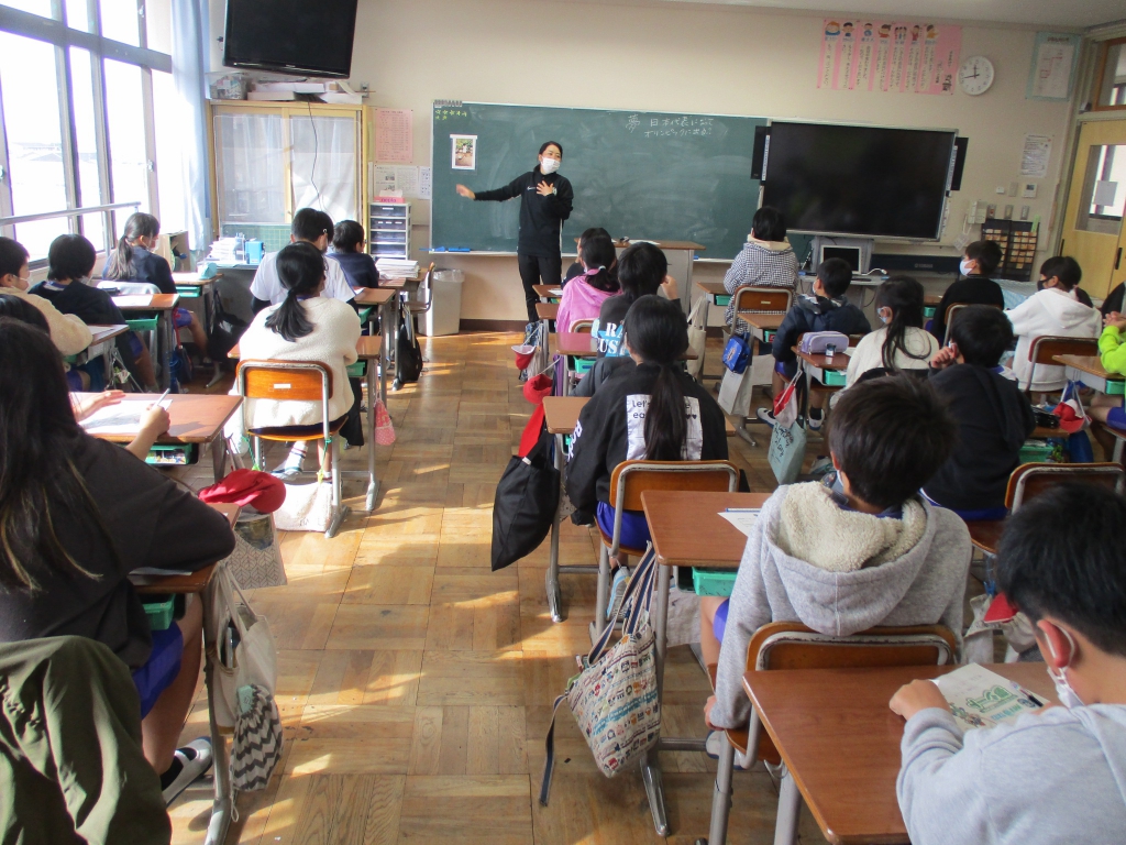 MIOびわこ滋賀のコーチで、元女子サッカー選手の大谷未央さんに夢授業の講師に来ていただきました。大谷さんは、2004年のアテネオリンピックと2003・2007年のFIFA女子ワールドカップに出場され活躍されました。大谷さんの経験から、夢を持つことの大切さについて教えていただきました。