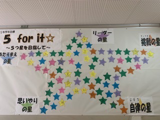 それぞれの学年で、学年目標を子どもたちに示し、掲示物を作成しました。