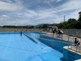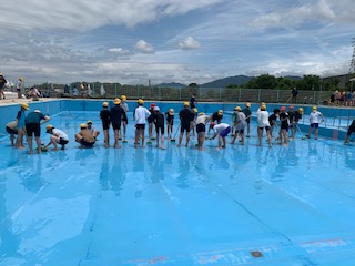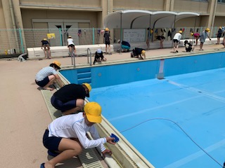 6月からの水泳学習に向けて、6年生の児童がプール掃除を行いました。