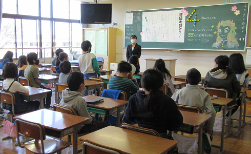 入学式では、在校生からのお祝いビデオメッセージを放送しました。御園小学校みんなで1年生の入学をお祝いしました。
