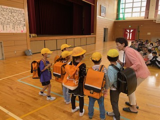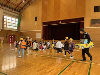 1年生では、市教育委員会の生涯学習課と総務部のご協力のもと、防犯教室を実施しました。不審者に遭遇したときの対応や「いかのおすし」、防犯ブザーの使い方などについて体験を通じて教えていただきました。