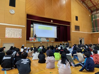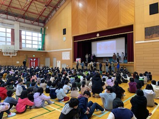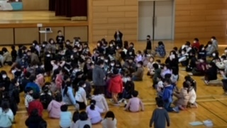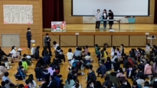 全校でニコニコ集会を開催しました。委員会からのお知らせと