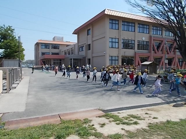 避難訓練を実施しました。子どもたちは真剣に訓練を行い、素早く運動場へ学級ごとにまとまって避難することができました。