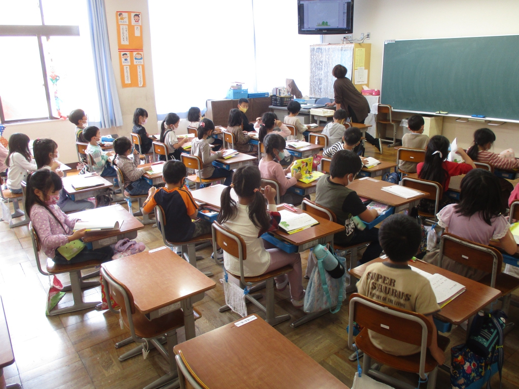 学校生活にもなれてきた1年生。発表の仕方、聞き方、名前の書き方もずいぶん上手になりました。