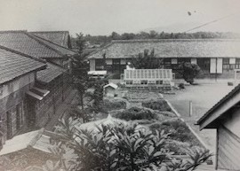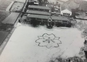 昭和20年代の御園小学校正面と昭和31年当時の小学校全景