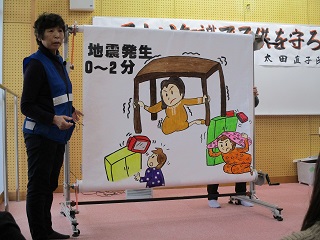 PTAの研修会。「たかしま災害支援ボランティアネットワークなまず」による「正しい知識で子どもを
