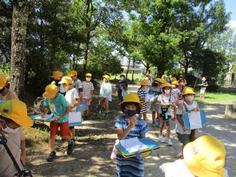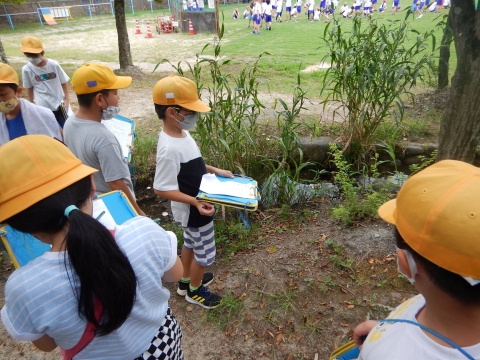 せせらぎの森や運動場で、こん虫などの動物探しをしました。
