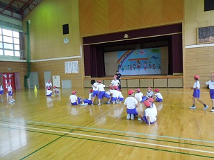 時間は体育館で友だちとコミュニケーションをとりながら体を動かしました。次の時間