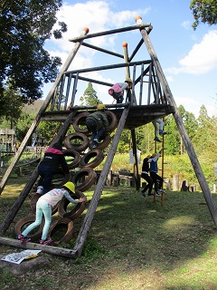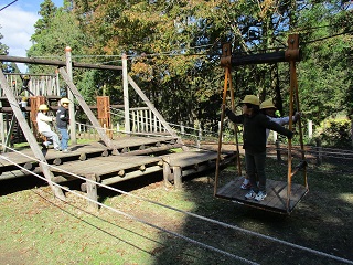 米原からはバスでウッディパル余呉に向かいました。たくさんのアスレチックがあ