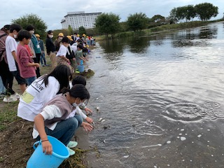 午後からは、「びわ湖学習」で学んだニゴロブナの稚魚の放流体験を行い、長浜の街を散策しました。