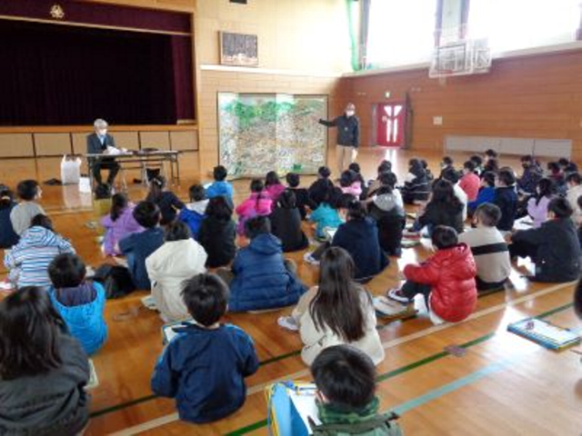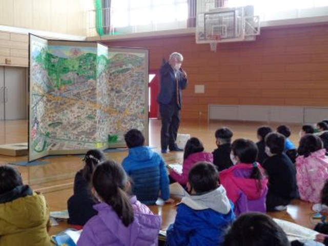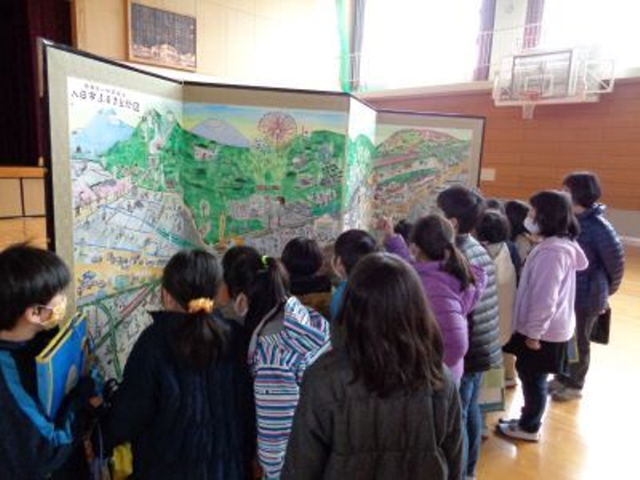 八日市地区まちづくり協議会より3名の方にお越しいただき、「八日市ふるさと絵屏風