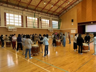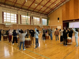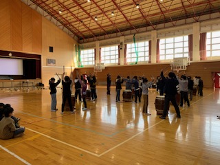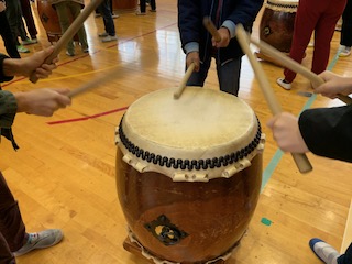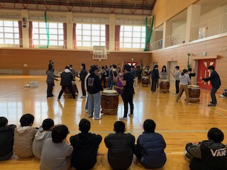 6年生は総合的な学習の時間に八風太鼓で活躍されている先輩に来校いただき、和太鼓の演奏体験をしました。和太鼓の本当の音を鳴らす方法を教えていただき、みんなで息を合わせて和太鼓の音の響きを楽しみました。