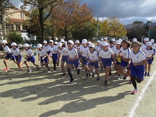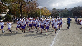 少し肌寒い日でしたが晴れ渡った晴天のもと、マラソン大会を行いました。体育の時間や