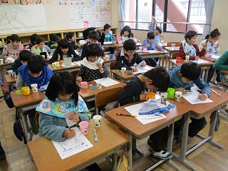 歯科衛生士さんをむかえ、歯の衛生についてお話を聞きました。その中で、歯の汚れを確