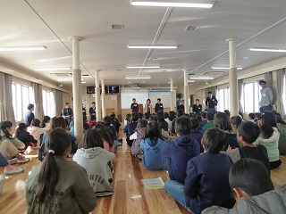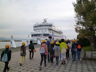 御園小学校、湖東第三小学校、能登川北小学校の3校でフローティングスクールに行って