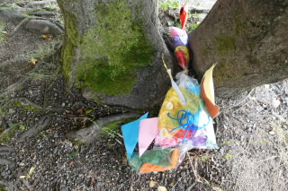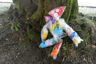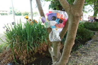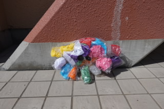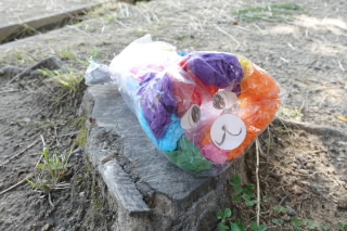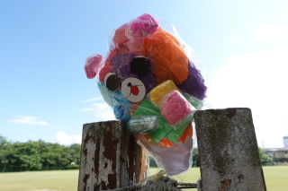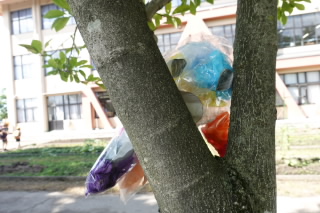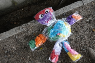 3年生の図工では「カラフルフレンド」をつくり、お気に入りの場所で撮影しました。