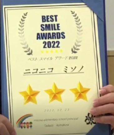 マラソン大会で最後まで走りきった1年生の児童が受賞しました。