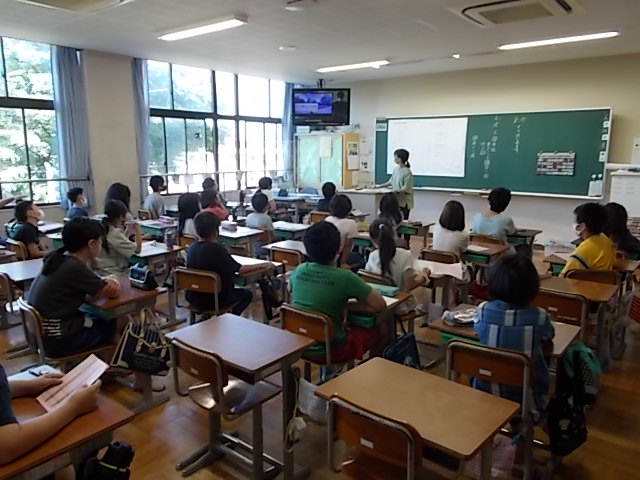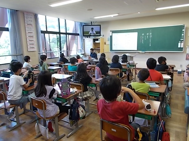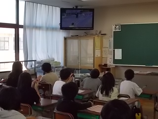 どの学級も、放送での校長先生、体育の先生、体育委員会の5・6年生のお話をしっかり聞く様子が見られました。