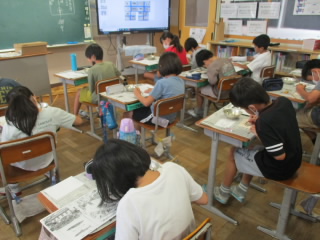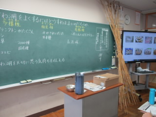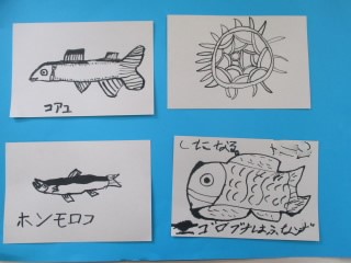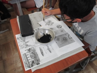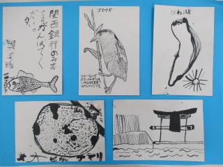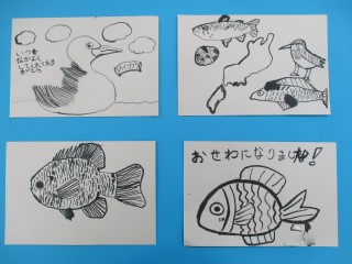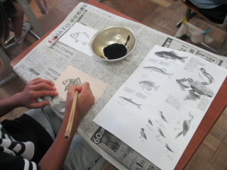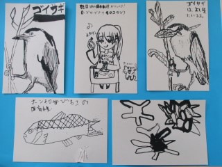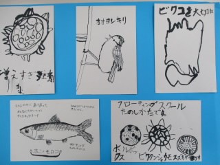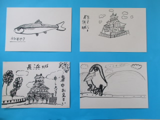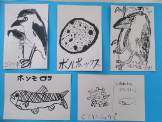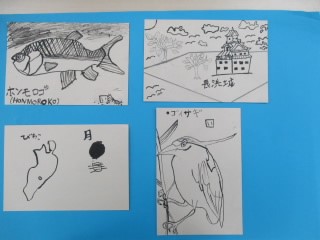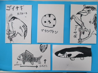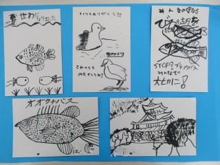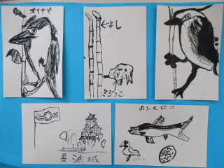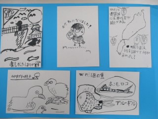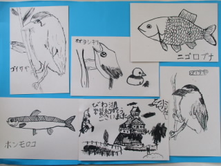 5年生はびわ湖学習のまとめに、ヨシはがきに学んだことをヨシペンで絵や言葉にしてかいて、誰かに伝える活動を行いました。