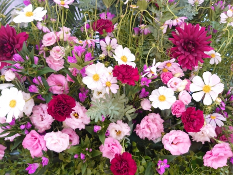 今月の花飾りには、コスモスなどの秋の花も登場しました。