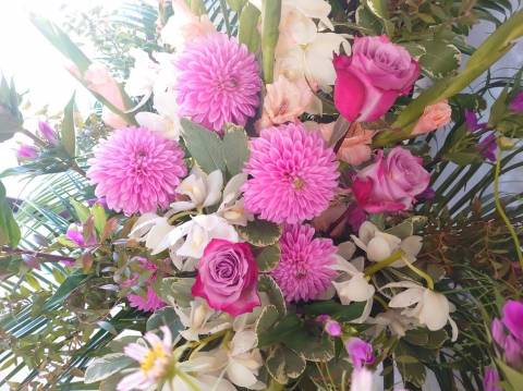今月も大きな花飾りを展示してくださいました
