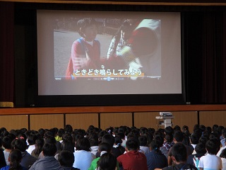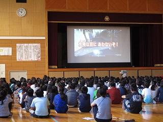 不審者対応の避難訓練をしました。体育館へ避難をしたあと全校でDVDを見ました。校
