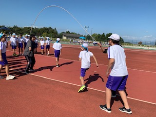 他の学校の友だちとともに自分の記録に挑戦する姿や互いに応援する姿が見られました。