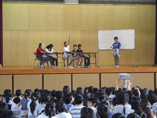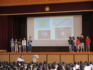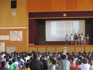 箱の靴の整頓)の呼びかけがありました。5年生からはフローティングスクールの発表も
