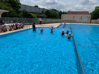 安全に水泳学習ができるように水泳の心構えや準備について確認しました。
