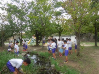 御園小学校には「せせらぎの森」というビオトープがあります。いろいろな生き物がいて
