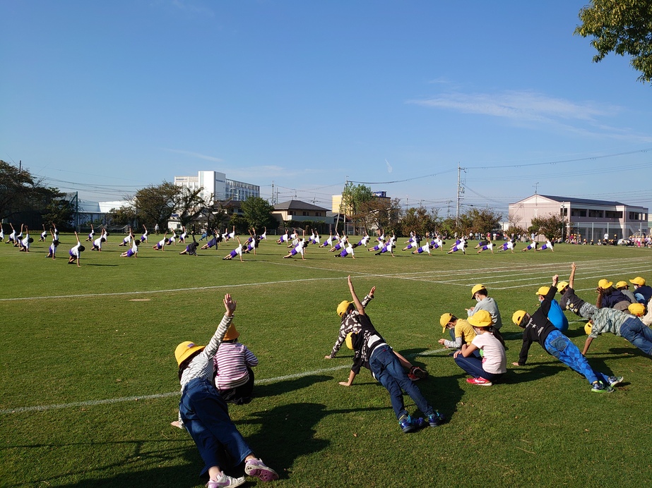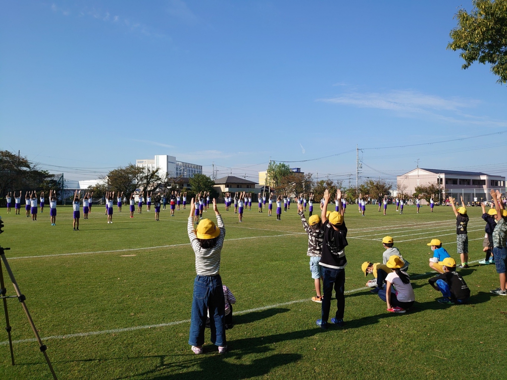 子どもたちは、6年生の動きをマネしながら楽しく見学していました。