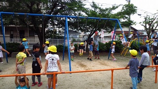 2年生の町探検。学校より西側に当たる地区の探検をしました。つつじ保育園あとの公園で遊