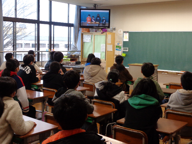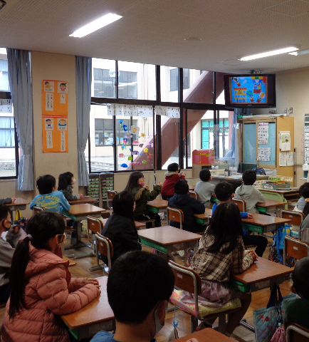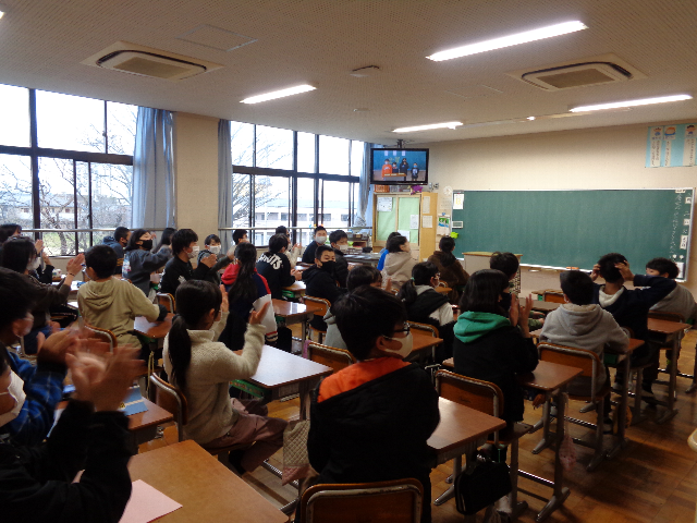 3月2日は、ビデオ放送で完成した全校壁画をお披露目してくれました。