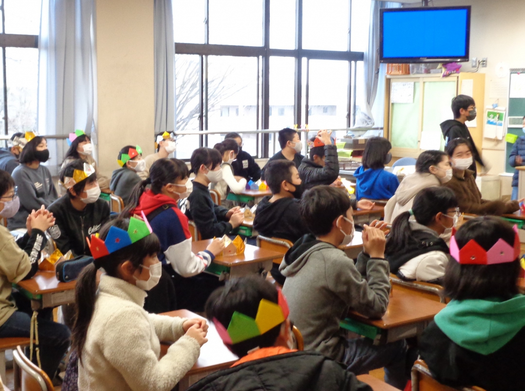 6年生のみんなに、5年生のみんなからかんむりのプレゼントです。