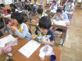 歯科衛生士さんに歯科指導をしていただきました。磨き残しをチェックし、正しいブラッ