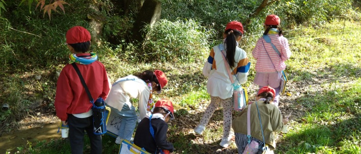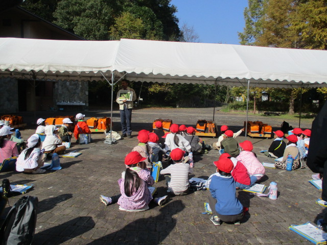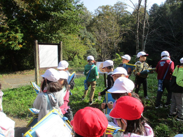 自然の中で友だちと仲良く活動することをめあてに、ウォークラリーや工作に取り組みました。