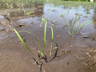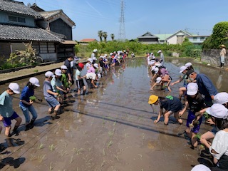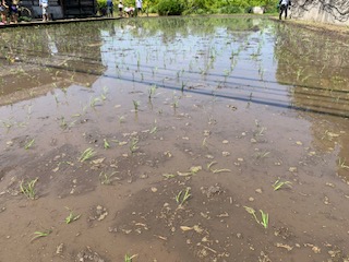 田んぼの土の感触を味わいながら昔ながらの田植えを体験することができました。