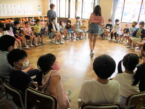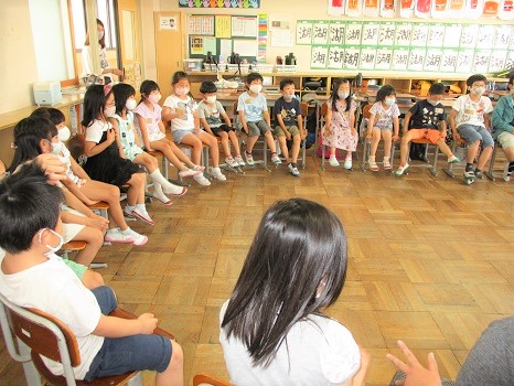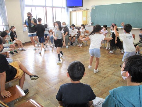 6年生による企画で、1年生と6年生が一緒に遊ぶ交流会を行いました。会の企画から運営まで、6年生が自分で考えて行動しました。