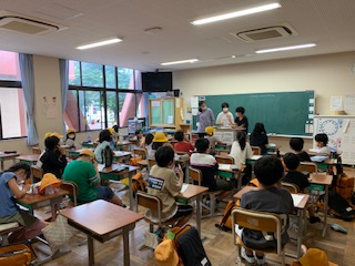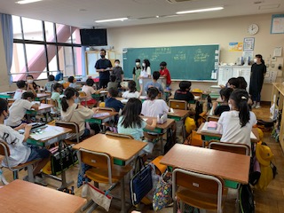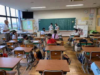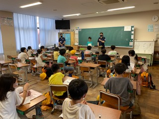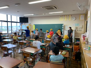 1学期の間、安全に登下校できるようにしてくれた班長さんや高学年のお兄さんお姉さんに低学年の子どもたちからお礼を言う場面が見られました。