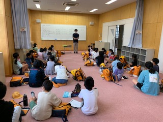 2学期も安全に登下校するために、1学期の振り返りと班の並び方の確認を行いました。