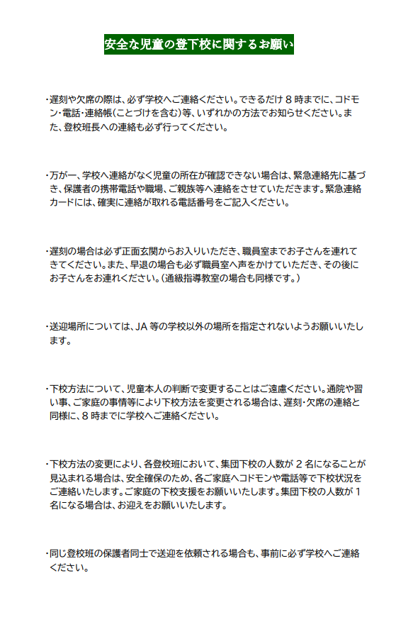 安全な児童の登下校に関するお願い