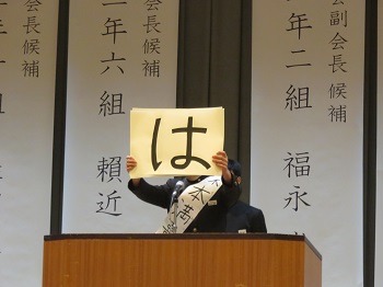 会長候補2名、副会長候補4名が立候補し、本人と推薦責任者が演説しました。どの候補者も具体的な公約を示し、立候補の熱意を表しました。
