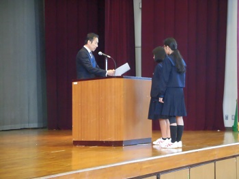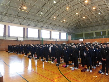 3年生が卒業して、1・2年生だけとなり、これまでとな違う、少しさびしい中での式となりました。しかし、生徒の聞く態度は、これまでと変わらず素晴らしく、能中生のマナーのよさを今回も褒めました。また、4月からの新しい1年に向けて、目標を持った生活をするよう話しました。