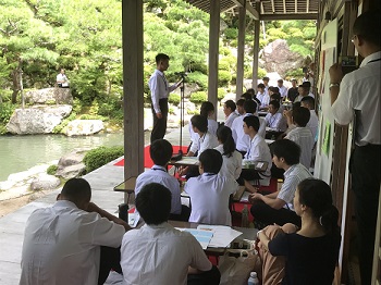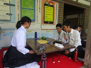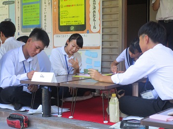 8月25日、愛東中学校区にあるお寺「百斉寺」で市内生徒会交流会が開催され、本校から生徒会長と副会長(2名)の計3名が参加してくれました。