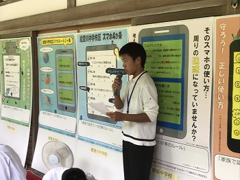 前半は、市内10中学校の生徒会が、それぞれ準備してくれた「スマホちらし」のプレゼンテーションが行われ、取り組みの交流をしました。また、後半ではいじめ問題について協議し、参加生徒は、東近江市長とも懇談する機会をいただきました。