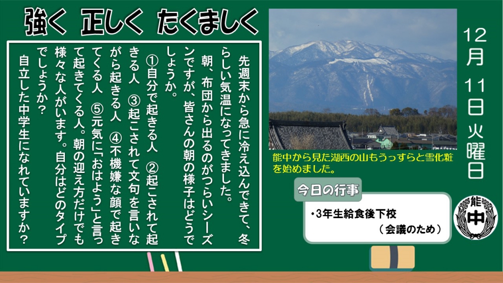 |   | |  | | 日誌| 2018/12/12 | 12月11日(火) |  | by 校長 |