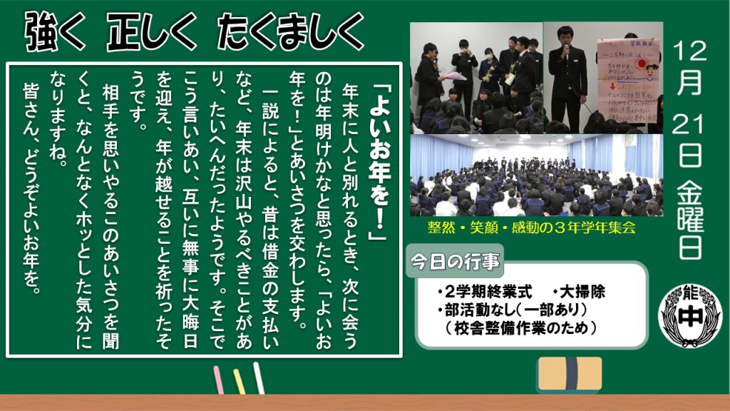 |   | |  | | 日誌| 2018/12/25 | 12月21日(金) |  | by 校長 |