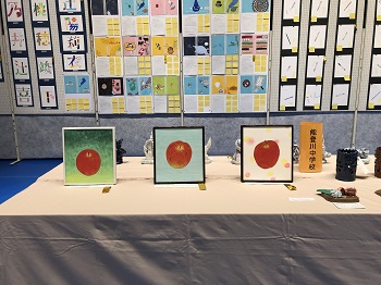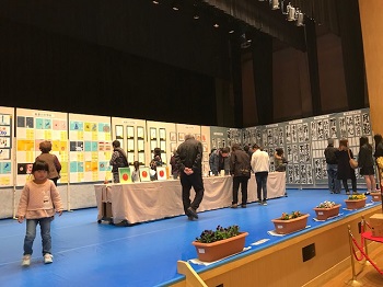 本校からも美術作品や書写の作品が展示されました。保育園、幼稚園、小学校、中学校の園児・児童・生徒の作品が並び、たくさんの来場者でにぎわいました。
