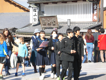 電車で京都駅まで行き、そこから班別研修が始まりました。途中、見学地ではミッション(すべきこと)をクリアしながら、最終、京都駅でのチェックの後で班ごとに能登川まで戻りました。